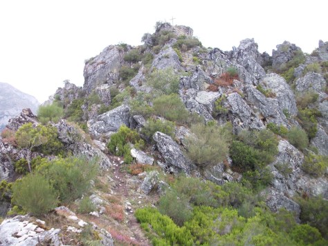 The first required a good climb to reach the summit. From where the car was parked I actually doubted that it was possible to reach the activation zone. It looked steep and narrow. However I thought Juan had activated this in the past and assumed this was a well known summit. The climb started out as a mild stroll up a forest path then up some steps formed with wooden risers. I climbed up the lower sections quite easily, having just walked for almost 500 km in the previous 3 weeks.