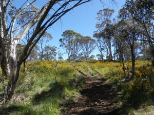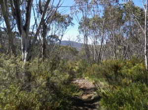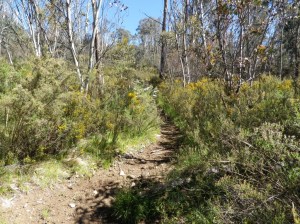 Many of the horse riders camp at Rocky plains and some even set up temporary areas for their horses to roam in, with temporary electric fencing. The initial climb up to the saddle is steady and follows a bridle trail. Some hoof marks are apparent in the soil as you climb upwards. The condition of the soil was damp but firm.